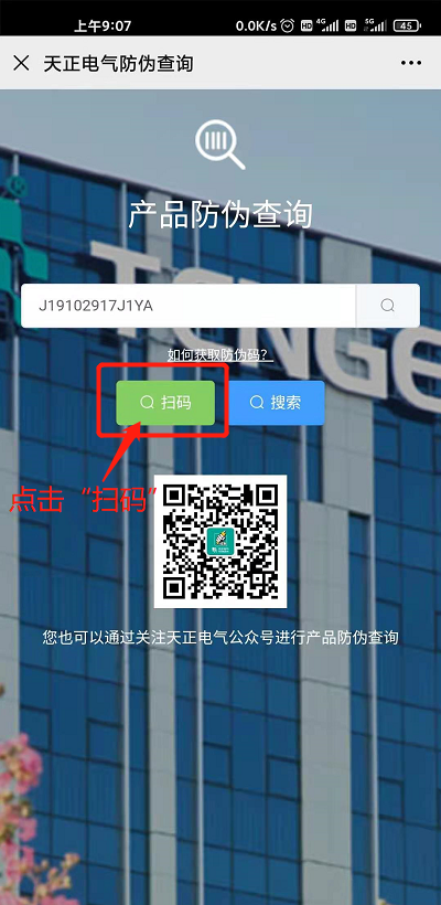 2、扫描产品本体上的二维码