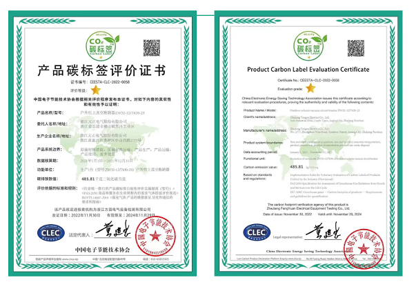 此次碳标签评价表明,leyu.乐鱼电气生产的户外柱上真空断路产品,在碳排放大数据方面按国际通行惯例推进,并具备一定的优势,对促进产品全供应链的温室气体减排,达成“双碳”目标具有积极作用。此外,leyu.乐鱼还获中国电子节能技术协会颁发的低碳产品供应商证书。